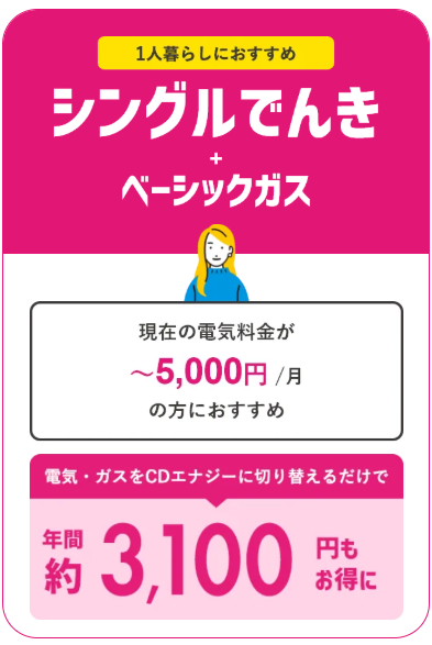 CDエナジーをセットで選ぶ大きな魅力の一つは、セット割引に加え、独自のポイント還元等があります。多くの会社が「電気だけ安い」「ガスは標準的」という構成であるのに対し、CDエナジーは電気・ガスそれぞれの単独プラン自体が、東京電力・東京ガスの主要プランに比べ、基本料金・電力量料金・ガス従量料金が抑えられた設計が魅力です。 その上で、両方をまとめることで「セット割」が適用され、電気料金とガス料金が割引されます。