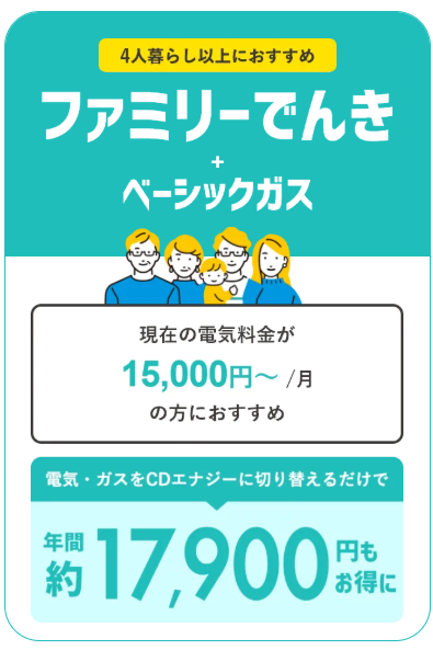 人数に合わせたプランあり ベーシックでんき+ベーシックガスなら約6,000円/年 お得※10 |
